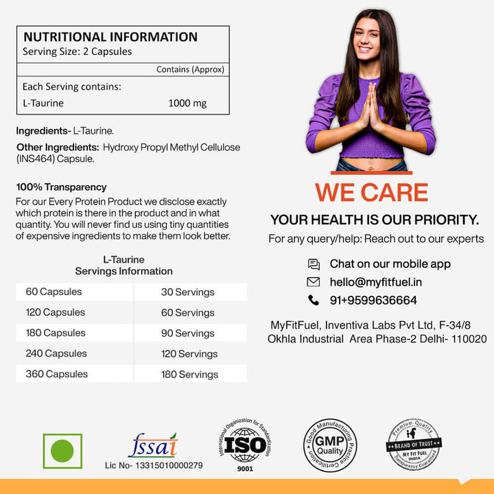 We recommend taking 1000gm (2 Capsules) of L-Taurine a day or as suggested by your certified dietician.